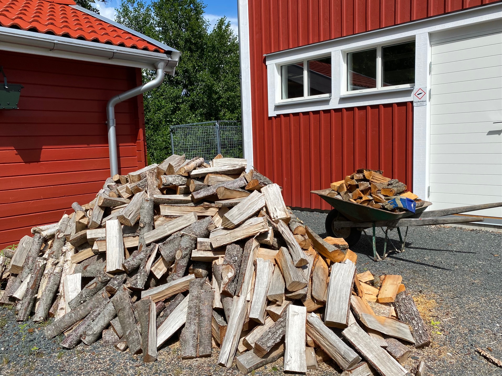Det har gått fem år sedan jag avverkade all skog på granntomten på vårt förra boende. All denna ved har skapat mig ett enormt arbete. Först avverka skogen, ta bort allt ris, kapa och klyva veden och sedan torka den, i denna mega stora vedflo. Sedan fyllde jag Friggebod och verkstad med all denna veden. Så sålde vi huset och flyttade med oss alla denna ved. Det tog 4- 5 hela lördagar att flytta veden igen, denna gången till en ledig Carport på jobbet.