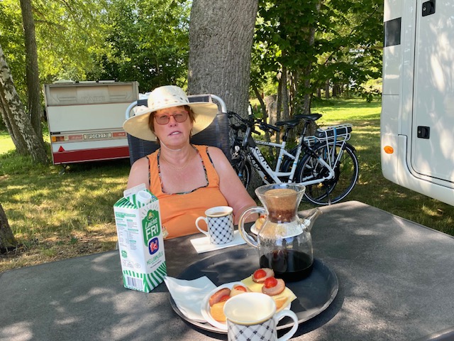 Här på Tokenäs Camping i Byxis på norra Öland, bokade vi först 8 nätter. Vi ville vara still och fira Midsommar. Eftersom vi har en så fantastiskt bra plats, intill havet med skugga under de stora ekarna, valde vi att stanna ytterligare 4 dagar. Då var vår plats redan bokad. Det skulle inte förvåna mig om Birgitta skulle vilja förlänga en gång till.