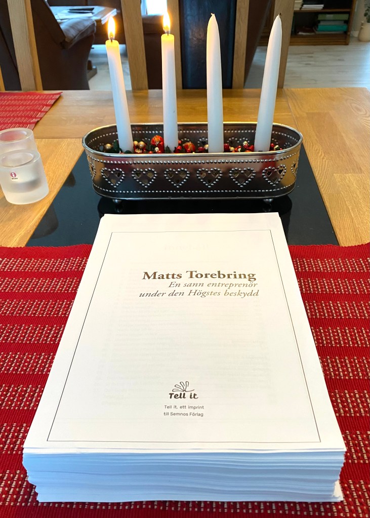”I måndags hade min pappa bokrelease! Han fyller 75 år i augusti. Han går fortfarande till jobbet varje dag. Han har alltid ett eller flera projekt igång och ett av de senaste projekten har varit att skriva en självbiografi med titeln Matts Torebring – en sann entreprenör under den Högstes beskydd. Nu är boken äntligen tryckt och klar. Han har skrivit boken alldeles själv. Jag har inte fått läsa en enda rad innan den gick i tryck. Han var rädd för att jag skulle gå för hårt fram med rödpennan… Han har bara gått 7 år i skolan och jag som jurist med språket som ett av mina främsta arbetsverktyg kan förstå hans rädsla. Igår läste jag ut boken och visst hade det kanske blivit någon rödmarkering om jag fått läsa den innan ;-), men slutbetyget är ändå MED BERÖM GODKÄNT. Bra jobbat, pappa! Boken handlar bland annat om hans fattiga uppväxt på Småländska höglandet, hans liv som skogsarbetare, entreprenör och företagare, alla gånger han har upplevt beskydd av högre makter och husbilsresor. Boken är mycket personlig och utlämnande på sina ställen. Den innehåller också rikligt med bilder. För egen del känns det fantastiskt att indirekt ha fått en stor del av sin uppväxt och bakgrund dokumenterad på detta sätt. Det finns mer att läsa om boken på pappas blogg mattstorebring.se och boken finns att köpa här: https://lnkd.in/eDCczpSA.”