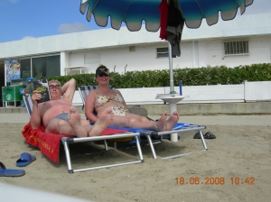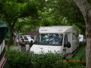 Camping Rubicone är ett paradis vid Adriatiska havet med grönska, blommor, välstädat och trivsamt på alla sätt. Därför har vi återvänt år efter år. Vädret har överraskat oss i år. Vi brukar mötas av + 35 – 40 grader i norra Italien, men i år har vi fått köra nästan hela vägen med värme på i husbilen. Idag, 16 juni 08, har vi bara haft + 24 grader som mest.