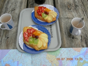 Lite trötta var vi allt på alla Italienare när vi lämnade landet i år. De kan inte prata med varandra, de skriker till varandra. Dessutom deras vita bröd eller stenhårda Ciabata blir man trött på efter 3 veckor, men deras Pizza är god. På resan till Balaton i Ungern, väntade vi med att fika tills vi kom till Slovenien. Vilken skillnad att få underbart gott och mjukt bröd att äta.