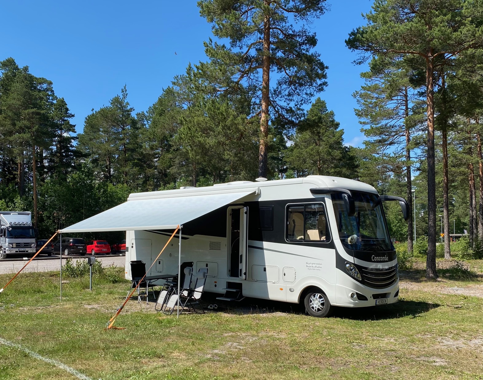 Sala Kommuns Ställplats på Musiegatan. Oftast trasig betalautomat läste vi innan på nätet, så även idag. Men vilken fin ställplats det är intill stadsparken och nära centrum. Föredömligt av Sala kommun.