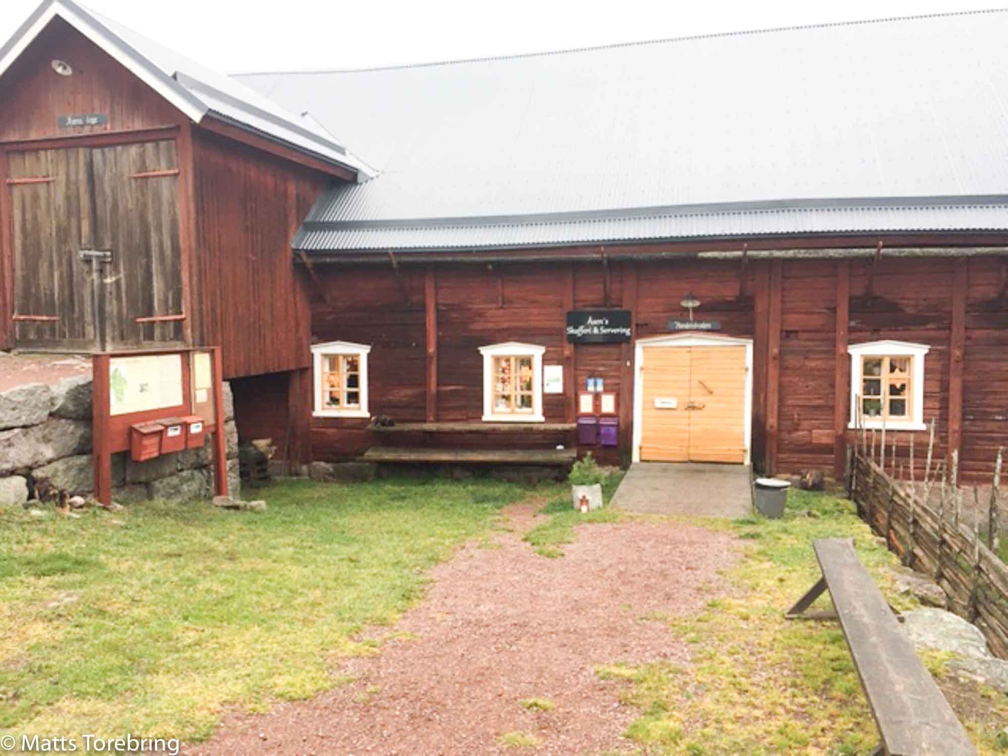 Idag är det servering och handelsbod i lagården