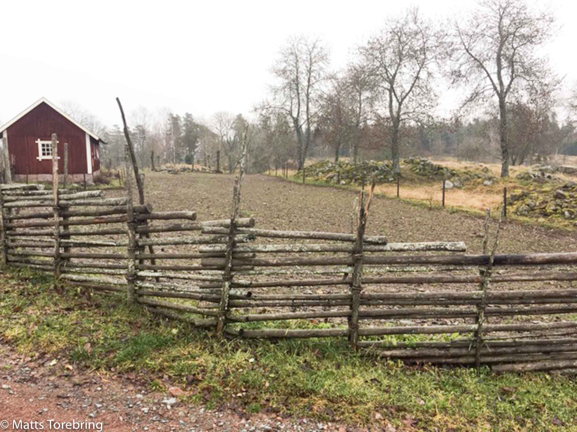 Mycket fina hantverksmässiga gärdesgårdar, omgärdar de små åkerlapparna.
