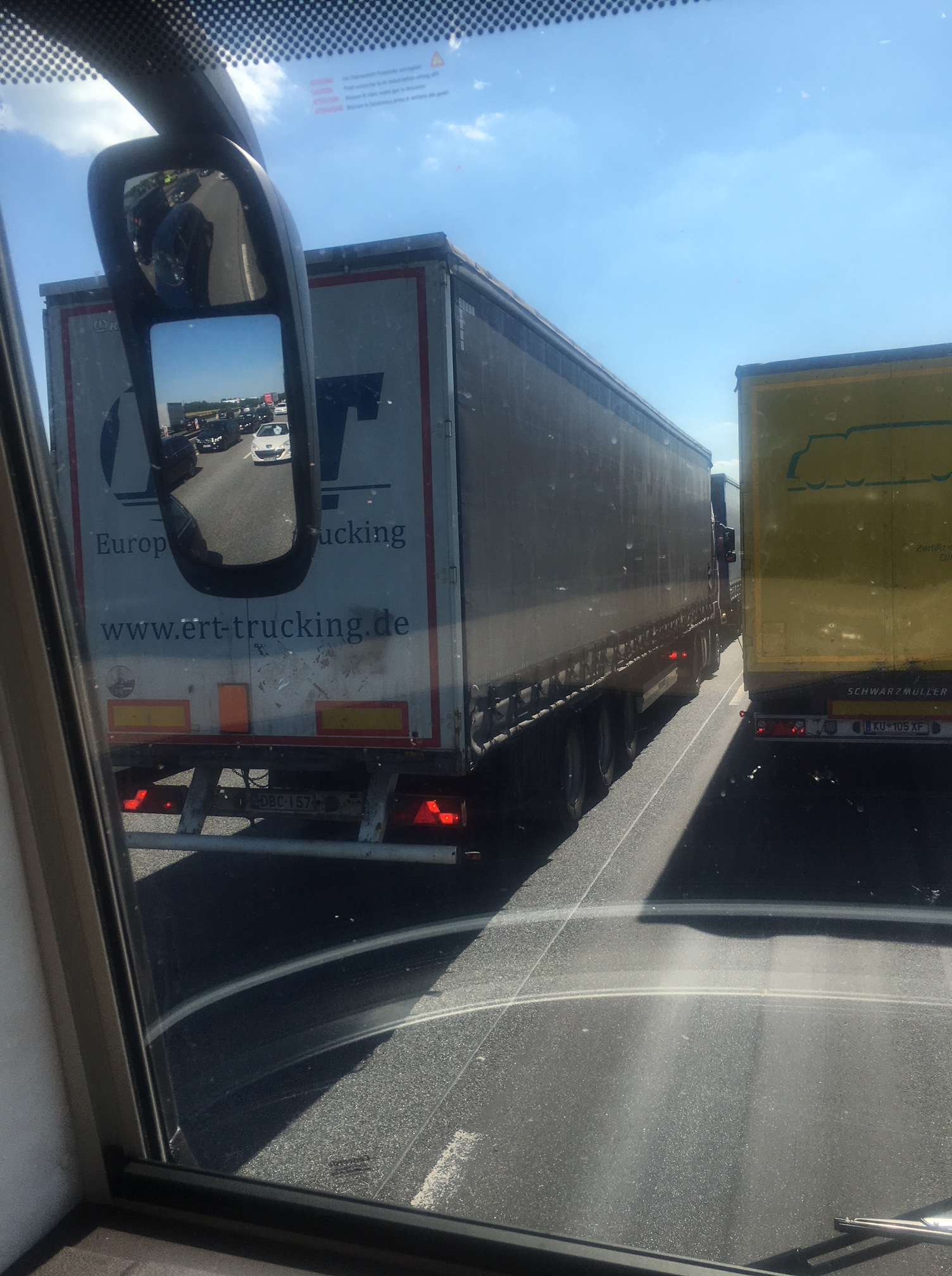 Mellan och kring städerna Hamburg och Bremen, har trafiken bestått av sex led med tradare, som mer eller mindre stått helt still. Trådarchaufförerna gav upp, under miltals långa sträckor, satt de på vägräckena och pratade. Omkörningsförbud över 7,5 ton, ingen kom fram, mer än småbilarna, de få som var ute.