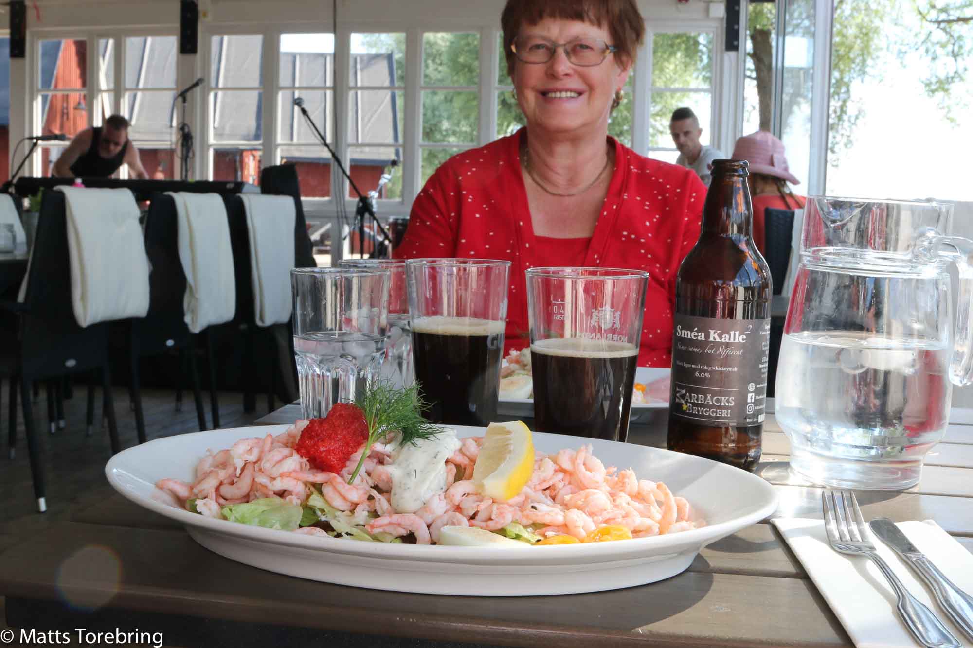 Det var så trångt på båten mellan bilarna, att det var på gränsen att det gick att komma ut ur bilen. Vi valde att äta frukost i bilen under överfarten. Här har vi tagit kaffepaus.