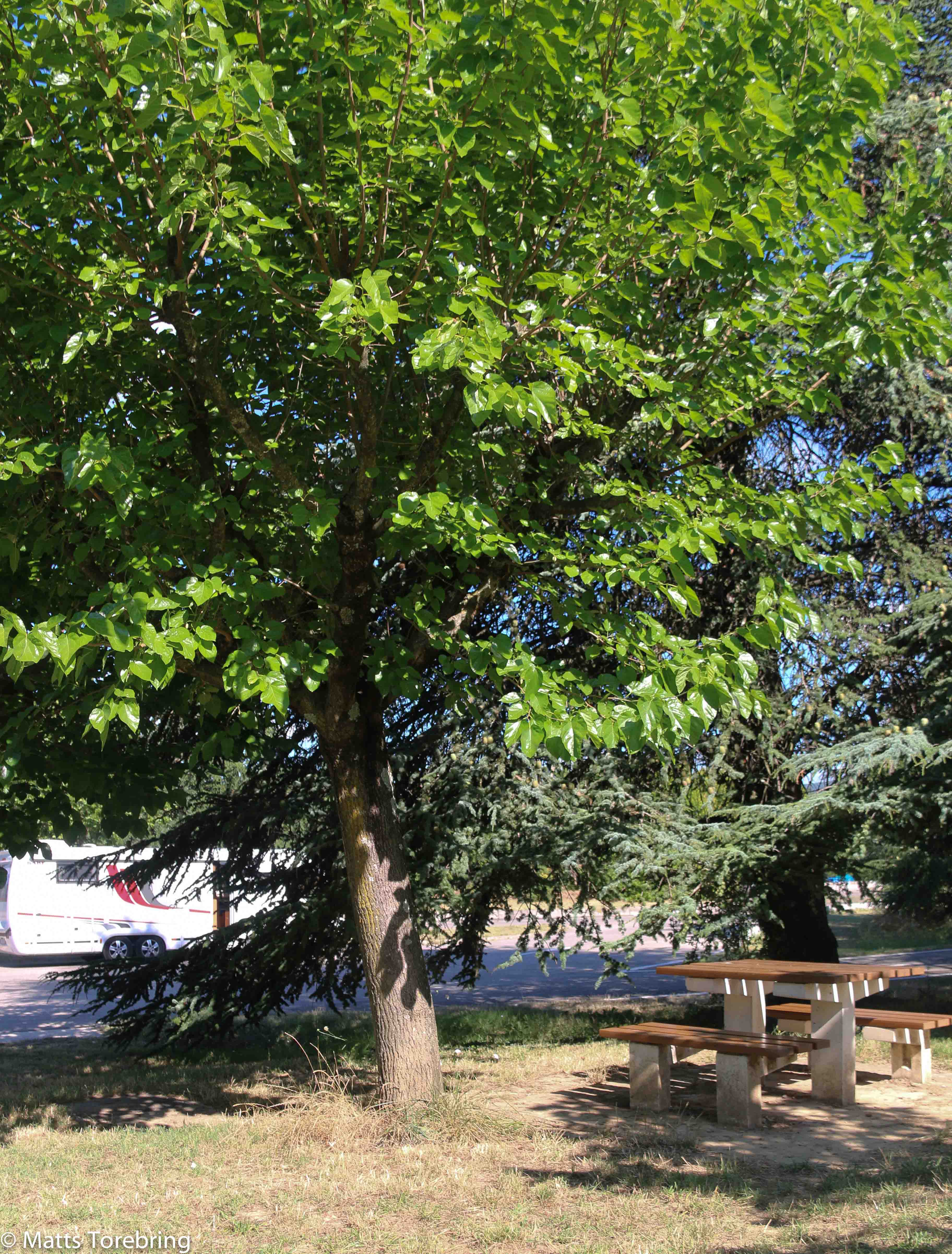 En kväll förra veckan kom en hög C……. husbil och ville tydligen ha en plats nära servicehuset. (det fanns andra platser) Vad gör man då? Jo höga stegar, tre man och en motorsåg, så var det löst. Alla vet att detta kallas bemötande. Visst blir man glad!