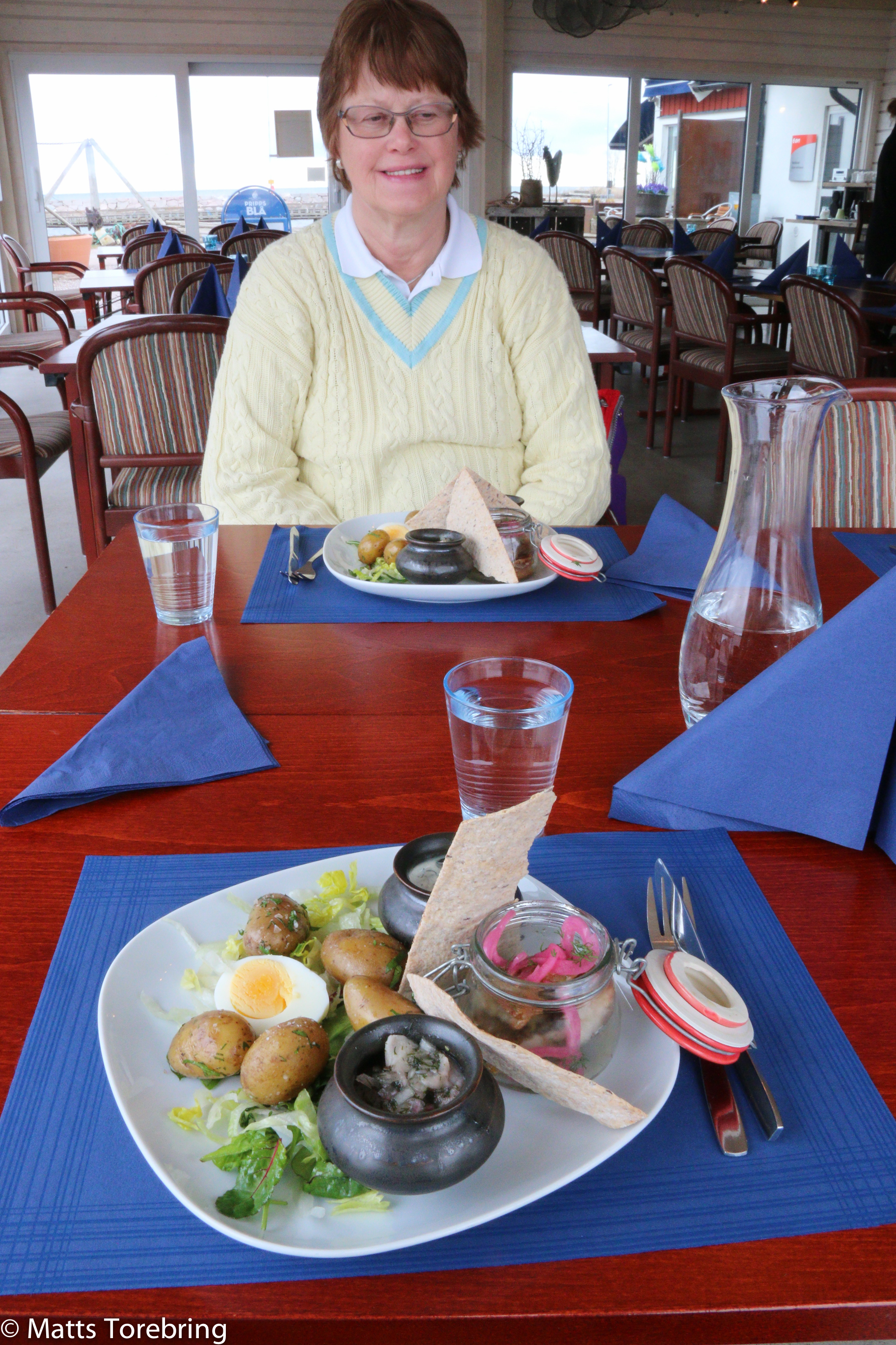 Jag fick nästan övertala Birgitta att boka bord. Sagt och gjort, vi åt en silltallrik för blygsamma 98:- inklusive vatten som dryck, och kaffe efter maten. Så otroligt mycket god sill & mat för pengarna, att jag tyckte det var för billigt. Missa inte detta vänner när ni kommer till Öland nästa gång.