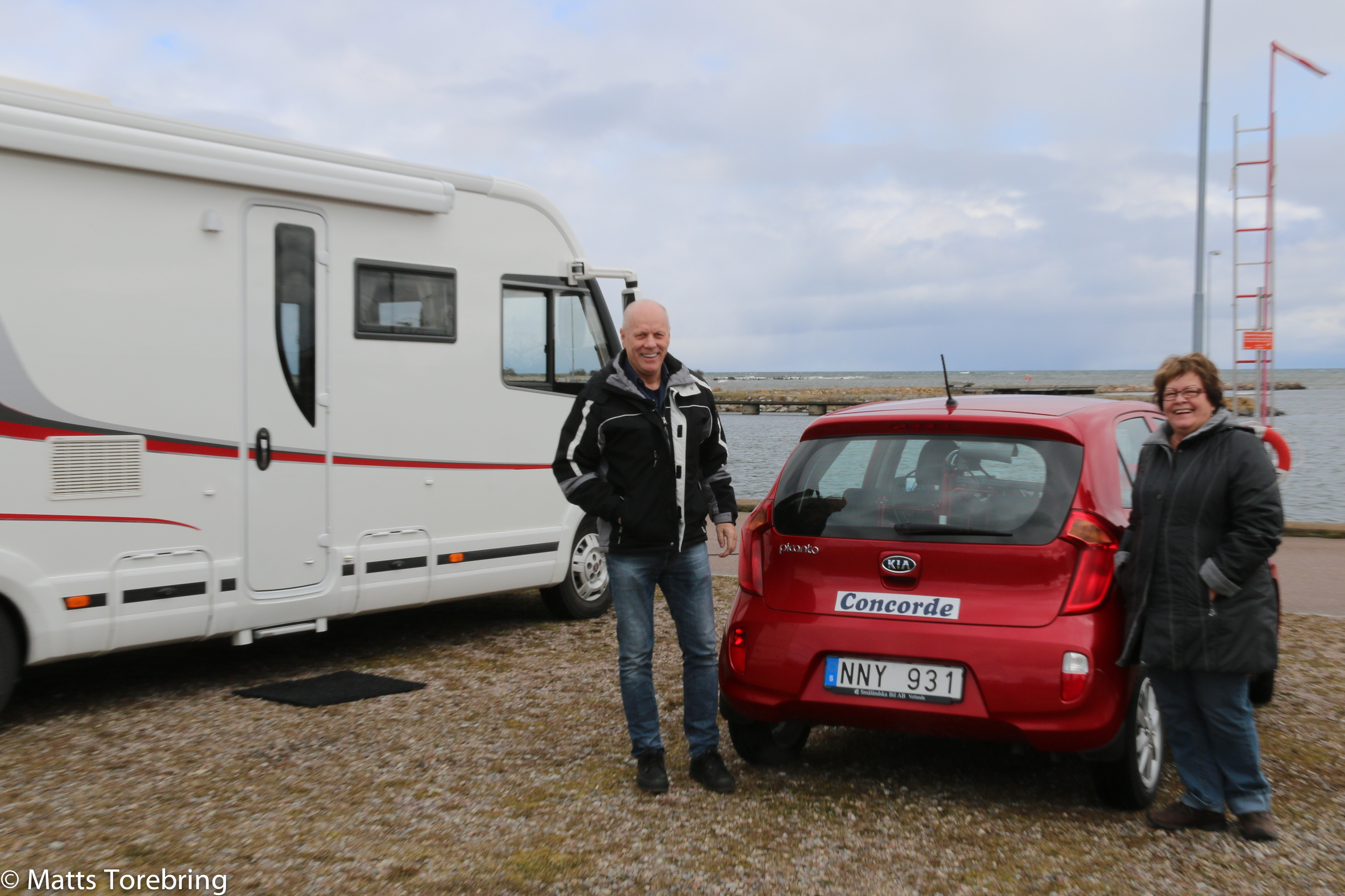 När vi kommer upp till Böda Hamns Ställplats kommer en mindre Kia körande och tittar på oss, när vi parkerar. Jag går fram och frågar… ”Var har ni pappa någonstans”? Ja ni förstår, som åker husbil, att pappa är för mig en Concorde Liner. Säg inte att det är du som är ”Torebring”? Jag har tänkt att ringa till dig, vi bor i Vetlanda, sa nya vännerna. Sedan blev det naturligtvis ett långt kaffekalas, tillsammans med våra nyvunna trevliga Husbilsvänner.