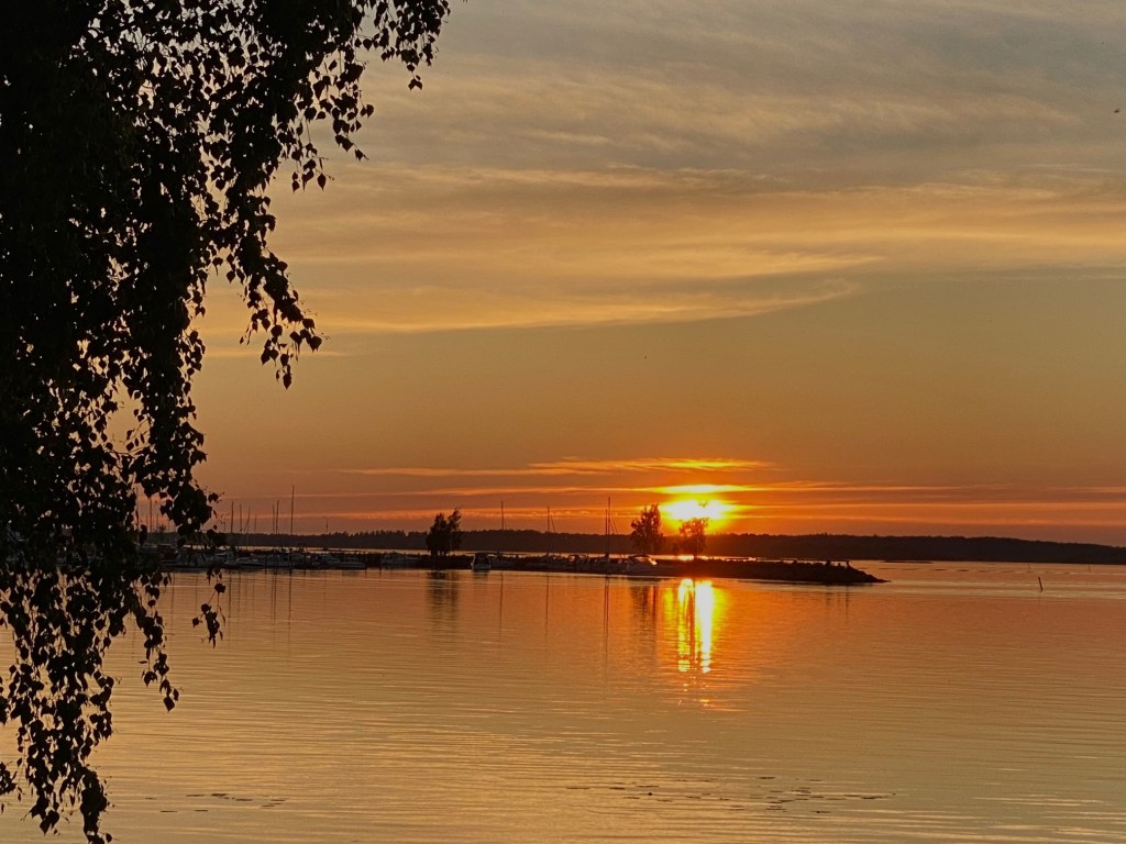 Solnedgång vid Hults Sommarhem, Kristinehamn. Ett trevligare mottagande, en vackrare miljö, den underbara naturen och det vackra skådespelet vid solens nedgång, kan man parkera så mycket bättre på en ställplats i vårt land?