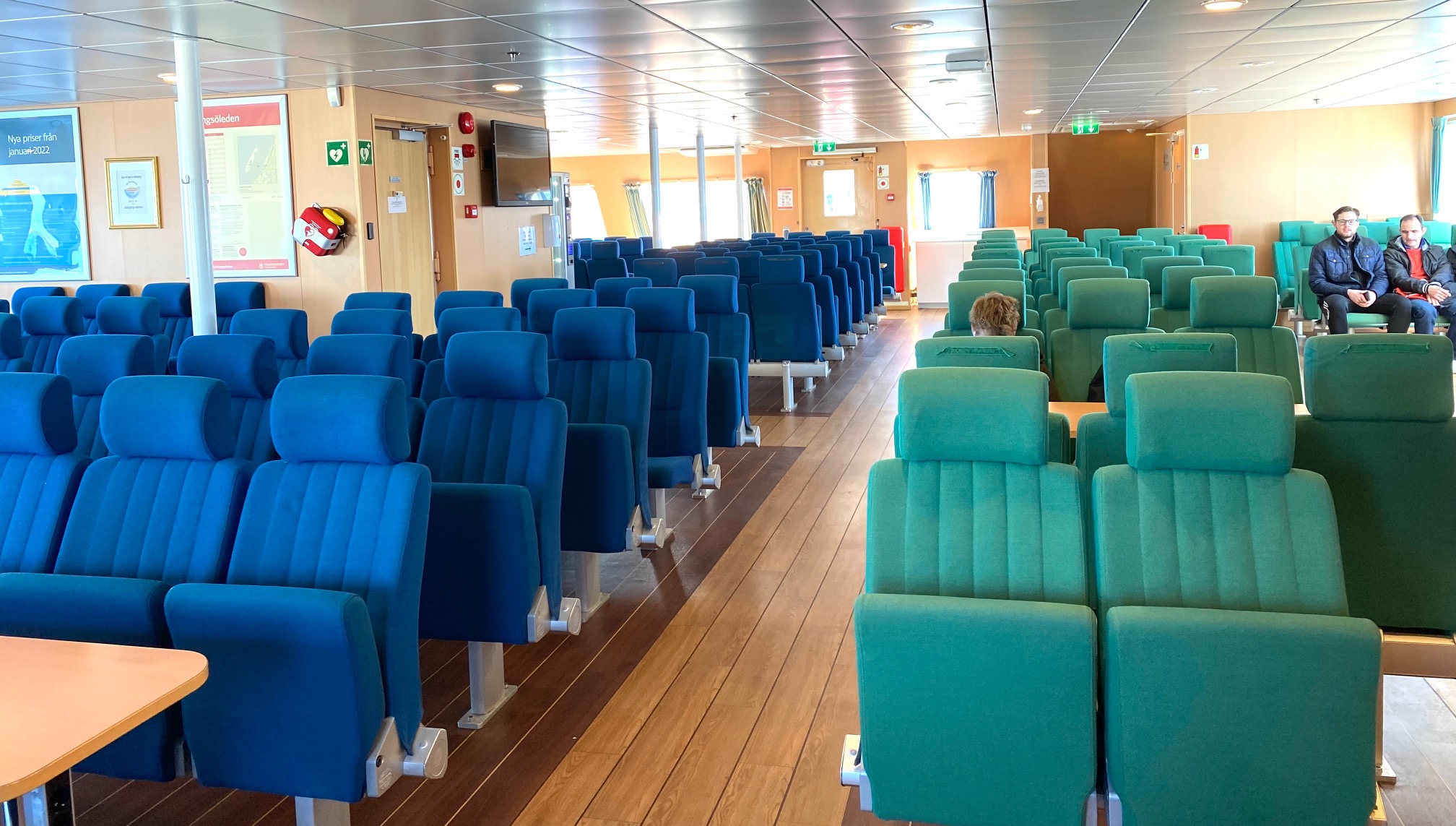 Vad skönt att få sitta här inne i värmen och i sköna stolar, när det var iskalla vindar ute på sjön.