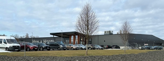 Torsten Jansson känner vi sedan många år tillbaka. Vi har har köpt mycket av hans produkter under årens lopp. Lite på avstånd trodde jag först att det var ett robotiserat höglager. Nej det är en Multiarena för många olika sporter. Jag uppskattade byggnaden till 144 m lång, 48 m bred och nästan 10 m hög.