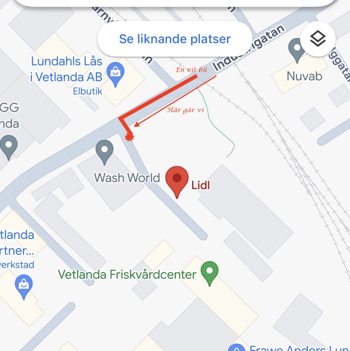 Jag kan nästan gå och längta hit till denna ställplatsen, alldeles nära Vetlanda centrum. Dels är det gratis parkering och Lidl har så mycket gott bröd, goda korvar och så god kokt skinka.
