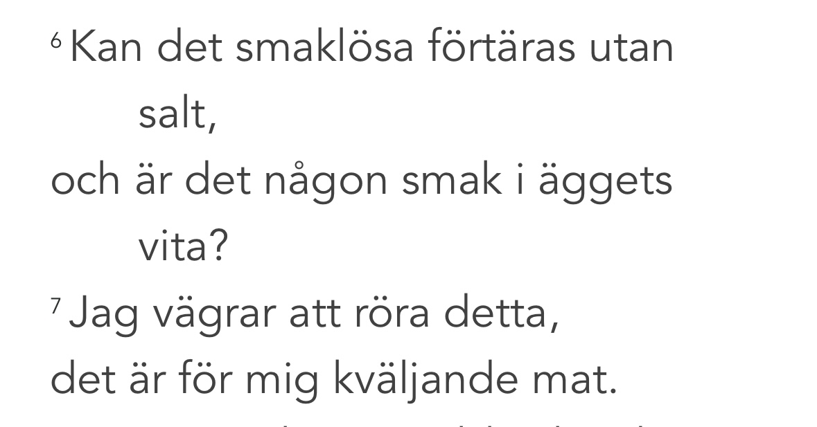 I veckan läste jag detta i G:a Testamentet i Jobs Bok kap. 6: 6-7