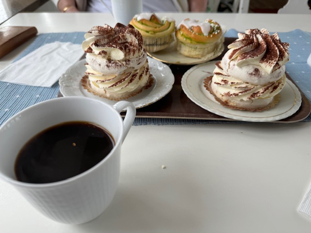 Med vår nya lilla EX 90 Volvo lockar det att bara sticka iväg. Denna gången till Väderstad i Östergötland. Jag hade ett ärende till Byggnadsvårdsbutiken. Först tog vi en vrålfika i byns Konditori. Det fanns ett ledigt bord på 2:a våningen att sitta vid, klockan var bara 10 på förmiddagen …