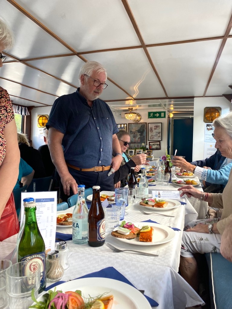 Vår värdinna kom springande över gården och möter oss, visar oss runt och sist den annorlunda gråvatten tömningen på ”ladugårdens baksida” (gäller för oss med tank). Detta var en förfallen släktgård som en av syskonen i sin familj tog hand om och just nu rustar upp. Trots den stora gården har värdfamiljen arbeten vid sidan av gården. Vilken stil och smak på allting. Jag berömde naturligtvis den perfekta ordningen på allting. Nja … sa husbonden, grävmaskin står visst kvar ute.