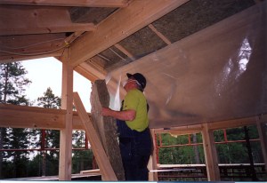 Jag rådfrågade Åke mellan varven och han kom och besiktigade mitt arbete med jämna mellanrum. När jag kom upp och det var dags att ta hål i taket och fästa upp en ny limträbalk och resa nya bärande stolpar på andra våningen kom Åkes Bygg. Rörmokare Claesson kom och lade golvvärme med koppling direkt till pannrummet. Efter cirka fyra hundra timmars eget arbete den våren och sommaren kunde vi flytta in och möblera i slutet av augusti månad. Resultatet syns på min hemsida. Nu har vi nio rum och kök i vårt hus. Tack vare en god isolering och noggrannhet samt Claessons golvvärme märker vi aldrig av kyla trots sträng kyla ute. Värmekostnaden i huset har inte heller ökat. Den ökar lite under hösten och förvintern men när sedan vårsolen kommer ger det värme in i hela huset genom de stora glaspartierna. Varma sommardagar blev det för varmt och vi var tvungna att montera ett bra solskydd. Detta fann vi i ganska stora utanpåliggande aluminium persienner som vi har motordrivna och kan köra ner när solen värmer på.