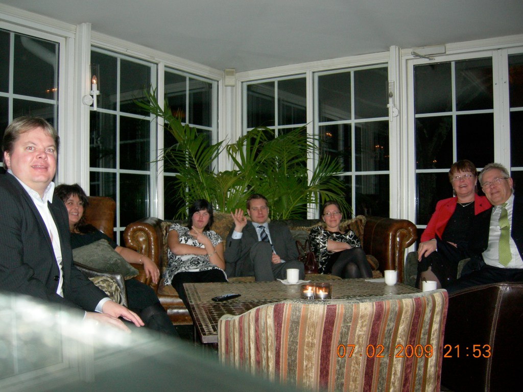 Ett fantastiskt minne från en guldkantad plats att fira på, Små Dalarö Gård, ett av kungabarnens inneställen i Stockholm. Mitt starkaste minne från denna gården var bastubadet och doppet i isvaken utanför, minus 15 grader. Eftersom allt var så fantastiskt trevligt, sökte vi oss sedan vidare till ytterligare 2 konferensgårdar med samma ägare, Fågelbrohus, Värmdö, (min 70 årsdag) och Krusenbergs Gård, Uppsala (Guldbröllopsdag).