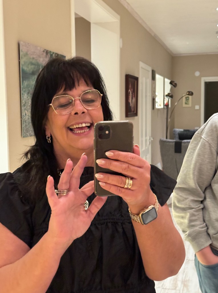 Överröstar alla med sitt skratt på kontoret och hemma.