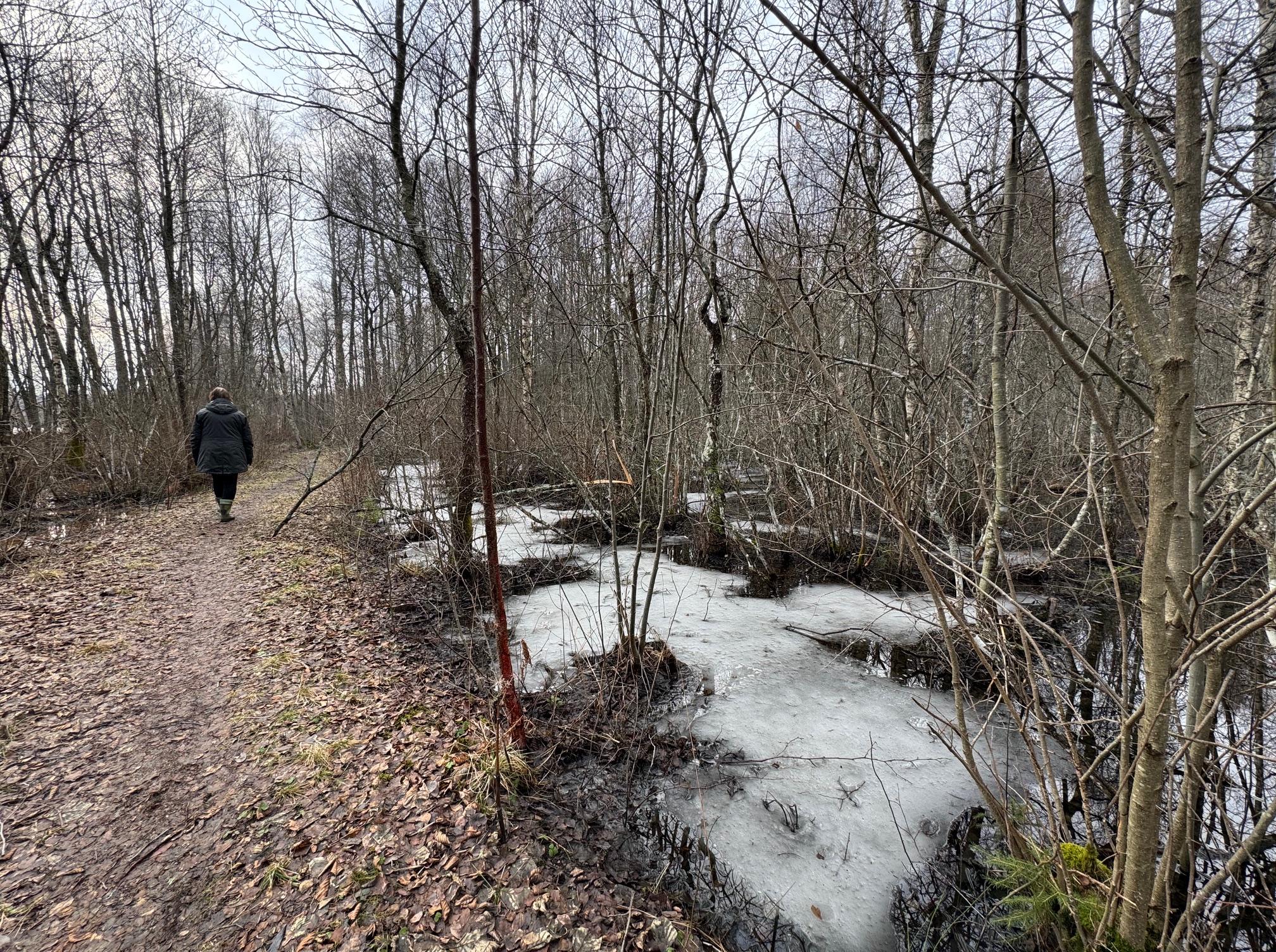 Vi gick en promenad bort till ”Olle i Sjöbotten.” Olle lever inte längre, men hans stuga står kvar djupt inne i storskogen.