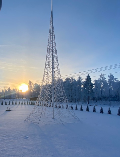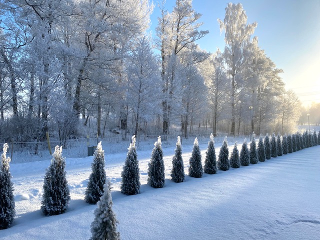 Allas vår räddning var att det låg ett cm tunt snötäcke på gångvägarna när regnet kom. Hade det varit rent till marken, hade det blivit blankis. Nu gick det bra att gå hem. För säkerhets skull har jag mina gångstavar och dubbskor, som en extra trygghet när det är isgata. Ändå en tröst att det blir ett riktigt mildväder ytterligare någon dag innan det fryser på igen.
