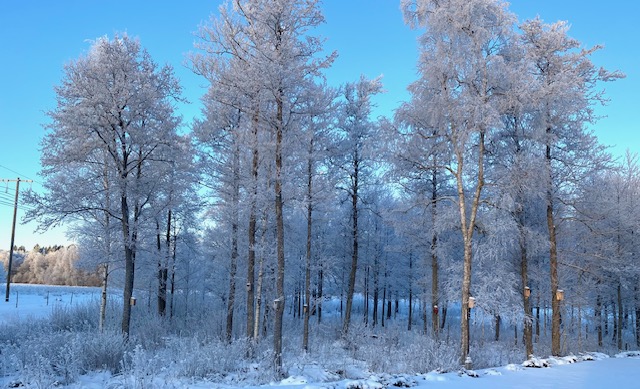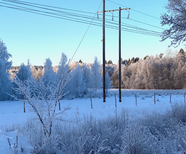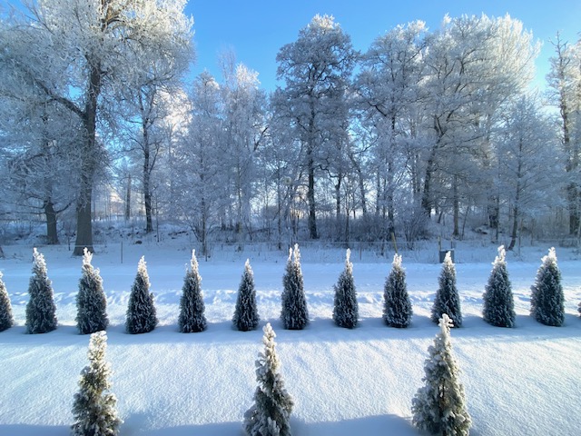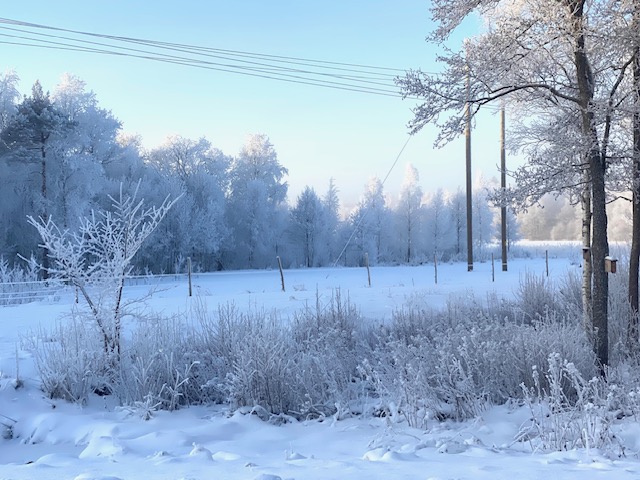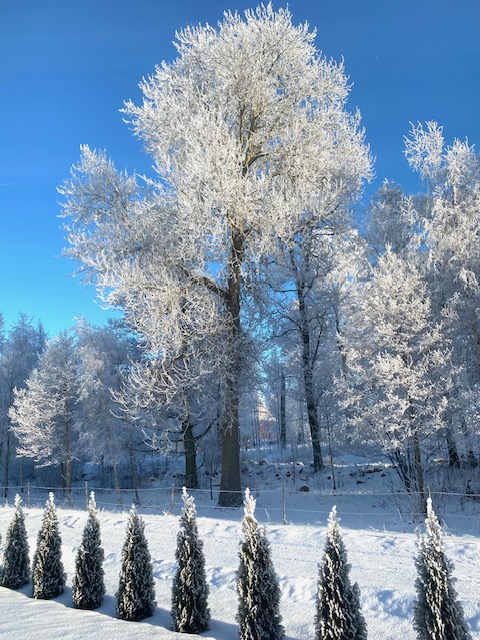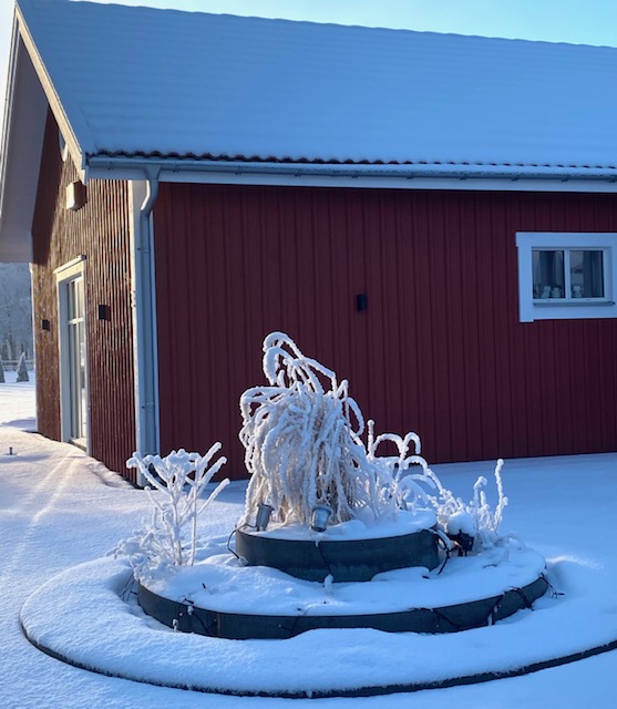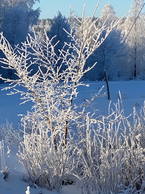 Först gläntade jag på sovrumsdörren idag och stack ut näsan, sträckte ut min iPhone och sedan läste jag på termometern som visade -23. Nej jag måste gå ut. Det blev flera gånger, allteftersom solen steg upp högre, så fantastiskt vackert där ute i naturen. Vilken drömboende vi har, nära till byn men ändå ute i det fria, med räven utanför fönstret i går kväll. Ni har sett bilderna så många gånger tidigare, fast nu i nya kläder.
