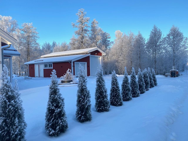 Men oj vad det kliar i fingrarna när jag ser den gröna hagen ovan, bussen har bara gjort en enda resa sedan början av juli -23, detta p.g.a. min långa ”inte må bra period.” Den står ju så blank och fin inne i värmen, men hur länge till ska den stå där? Nu kom en ny köldperiod och mera snö.