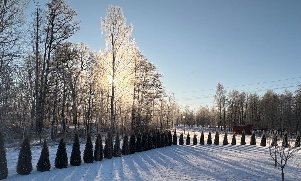 Vi somnade gott efter ett härligt bastubad på lördagskvällen och då var det -6 grader ute. På morgonen när vi vaknade var det riktigt kallt, minus 21 grader.