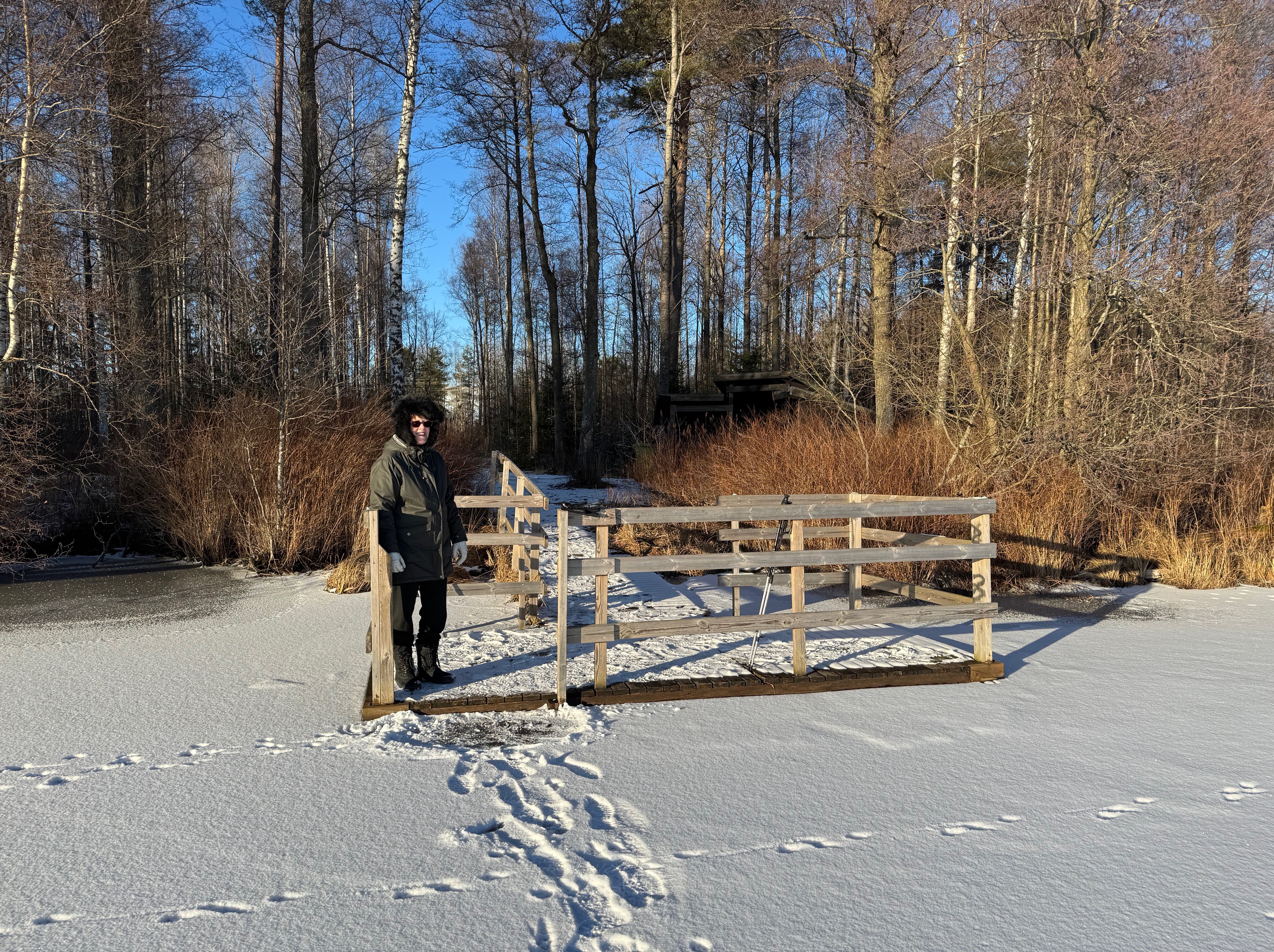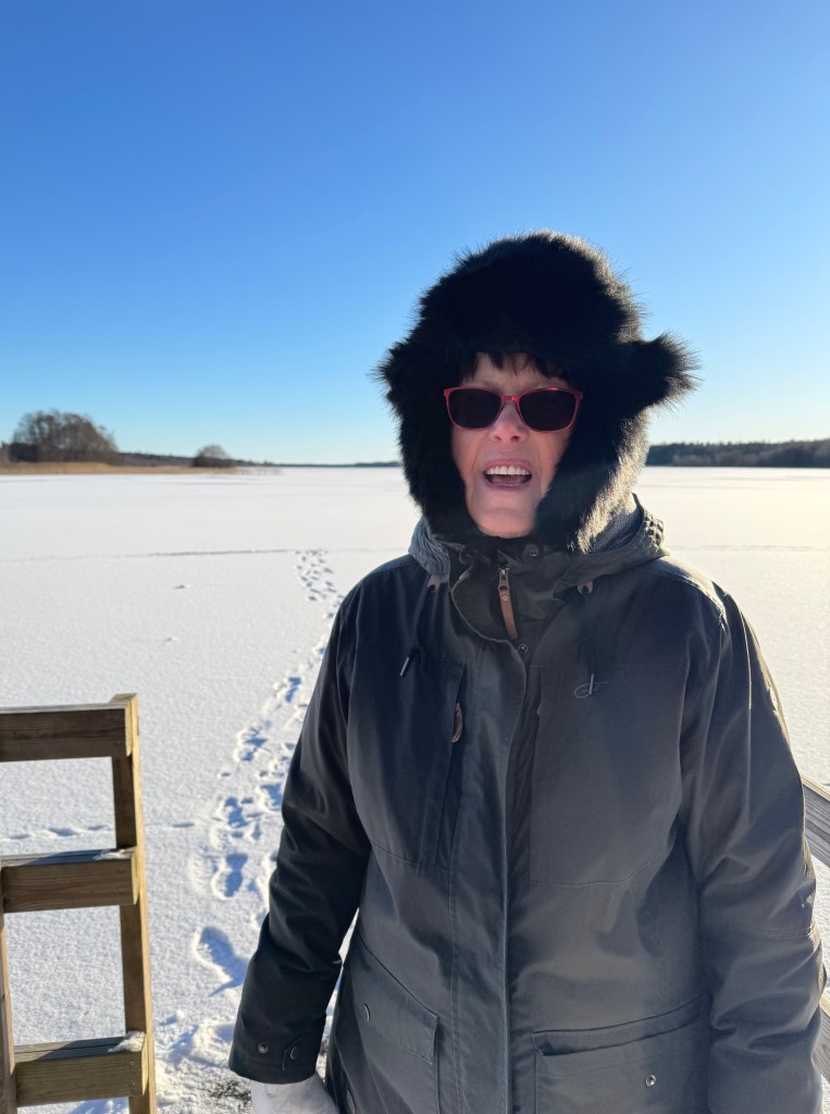 Idag kunde inte Birgitta motstå att följa med mig på en promenad. Men kallt var det …
