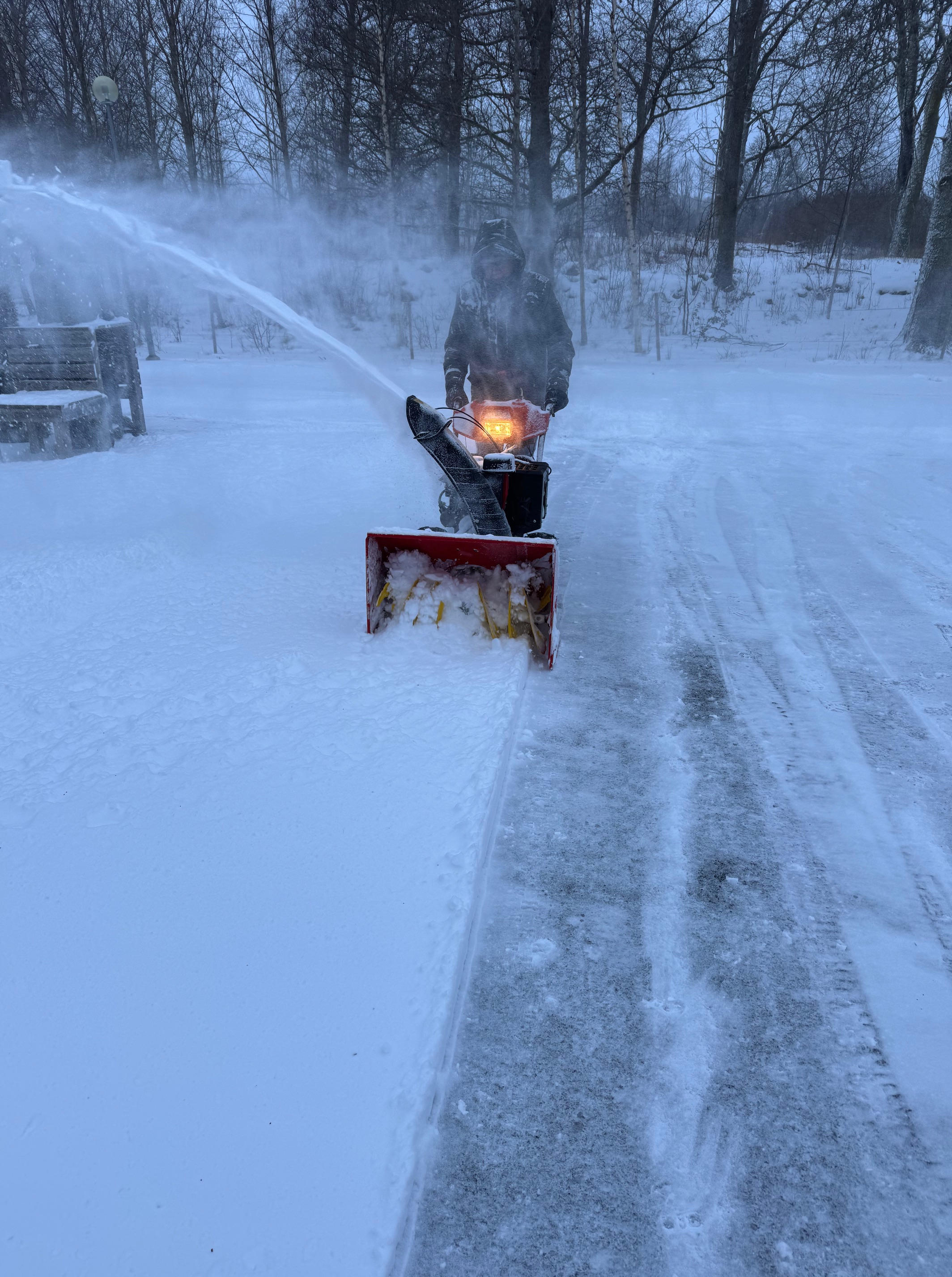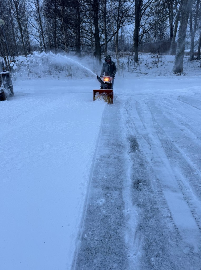 Så himla skönt att gå hem från jobbet i fredags kväll, medvind och ren nordanvind i ryggen. Annat blev det på lördags morgonen, när jag försökte blåsa snön tillbaka åt norr, då fick jag allt tillbaka på mig.