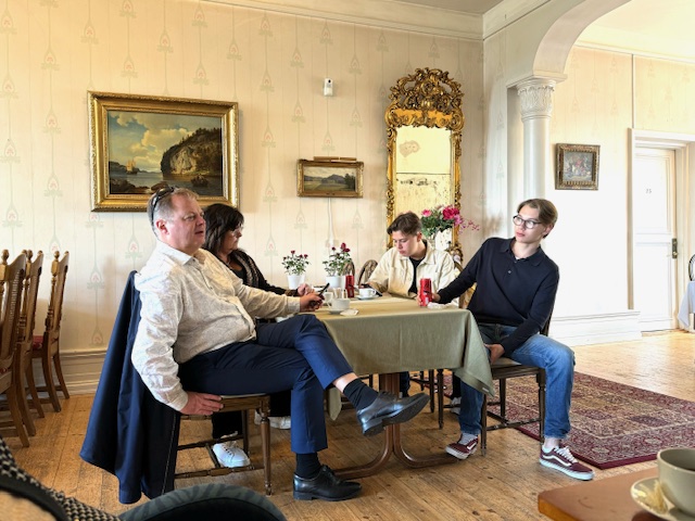 Före den stora festen på Vätterterassen samlades vi inne i Askersund på Borgmästarinnans Café där vi åt lunch och fikade med goda bakverk. Candra med familj kom från Stockholm och strålade samman med oss från Småland.