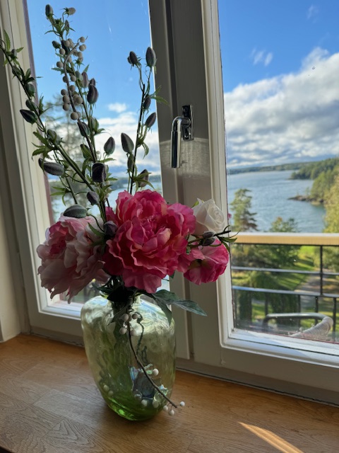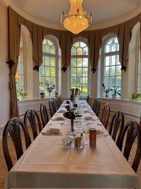 Redan i slutet av juli månad bokade vi tid och plats för Birgittas 75 årsdag, den 29 september. Samma dag fyller vårt barnbarn Nelly. Jag vill fira på Vätterterassen i Askersund, sa Birgitta och jag var den förste att hålla med. Vem kan slå detta ställe, bara Grand Hotell i Stockholm och några till? Tydligen hade vi tur och fick tala med ”rätt” person. Restaurangen håller stängt och man koncentrerar sig på uthyrning av rum med frukost. Vi fick i alla fall förslag av kocken på en fantastisk 5 rätters meny och 4 fantastiska rum.
