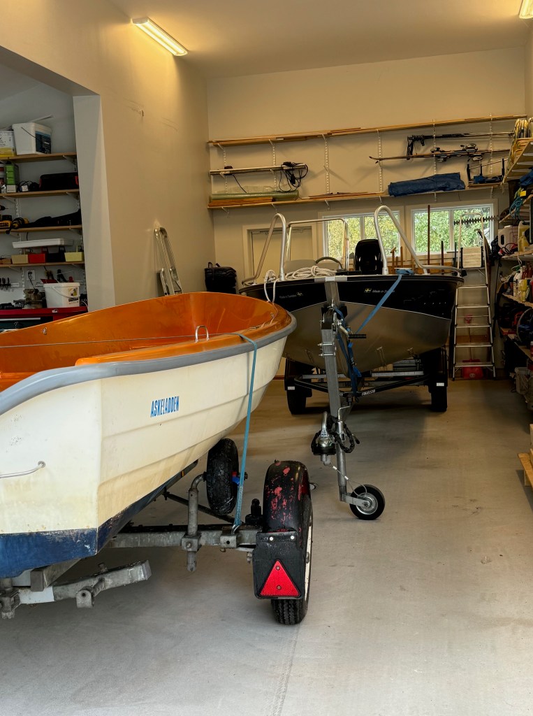 Bussen är borta och så skönt att kunna ställa in våra båtar i värmen. Nu är höstfixet nästan klart hemma, bara en utegrupp att ställa in, rensa bort lite löv och ogräs. Sedan får julen komma …