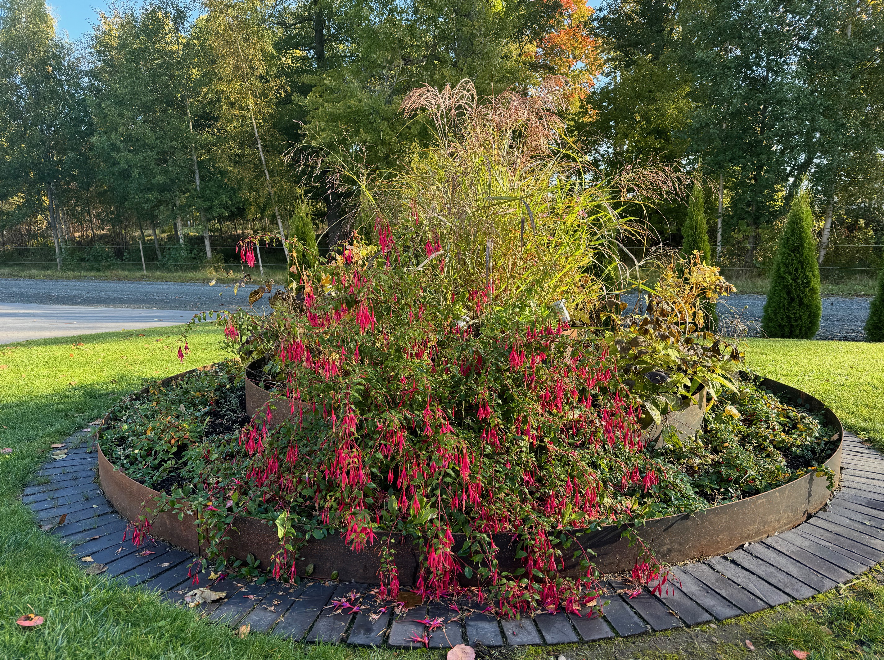 Dessa Fuchsia planterade jag i rondellen hemma för knappt ett år sedan, Inköpta i Spakarps Plantskola. Så vackra bland allt annat. Dessutom har de klarat några kalla frostnätter. I dag åkte vi till Spakarps Plantskola, som ligger mellan Eksjö och Vetlanda, närmare bestämt i byn Ingarp, för att köpa 2 stycken till.