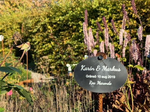 Cirka 40 brudpar om året gifter sig på Gränsö Slott. Efter detta får de en egen ros och skylt i Kärleksrosariet.